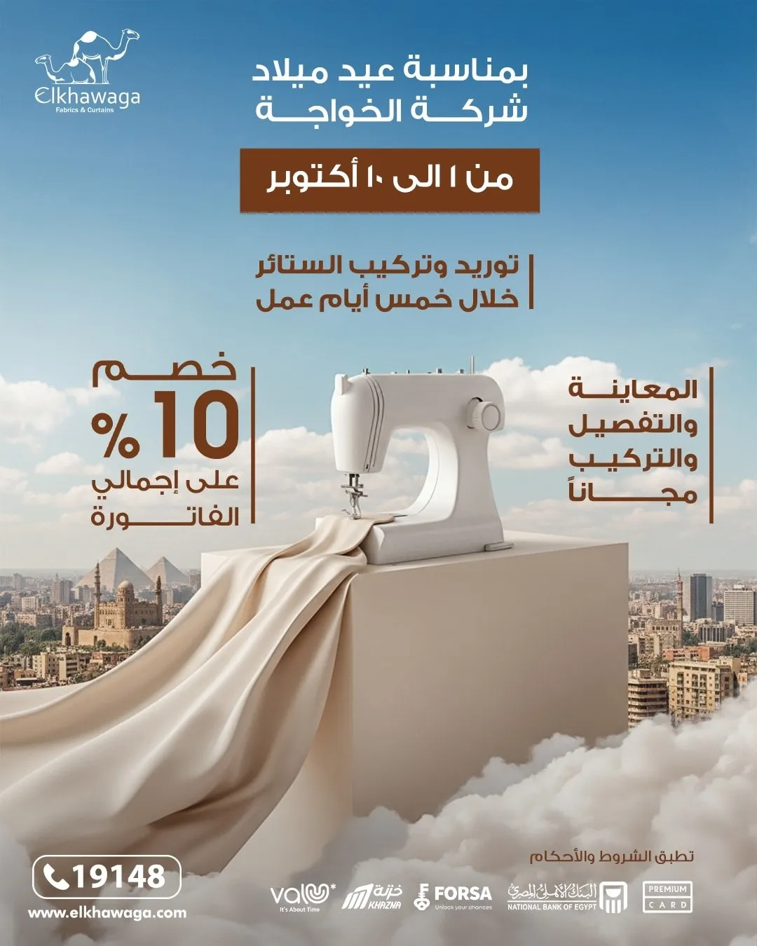 It’s that exciting time of the year again! El Khawaga Curtains & Fabrics proudly celebrates its annual ElKhawaga Birthday with the biggest discounts and offers of the year. From October 1st to October 10th, customers can enjoy unmatched deals, premium quality fabrics, and tailor-made curtain services designed to transform every home and office into a masterpiece of elegance and style.