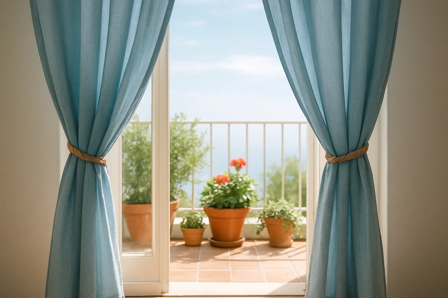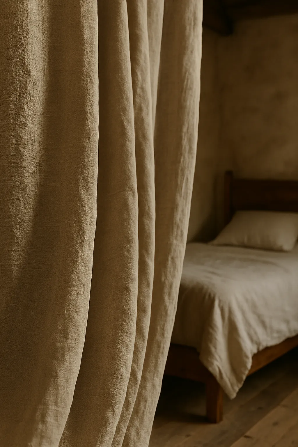 Linen is a 100% natural fabric derived from flax plants, making it an eco-friendly and sustainable option for window treatments. Its open weave structure allows excellent air circulation, offering a breathable and temperature-regulating fabric. This makes Linen fabric curtains ideal for warmer climates like Egypt, where they help keep interiors cool in summer and comfortably warm in winter.